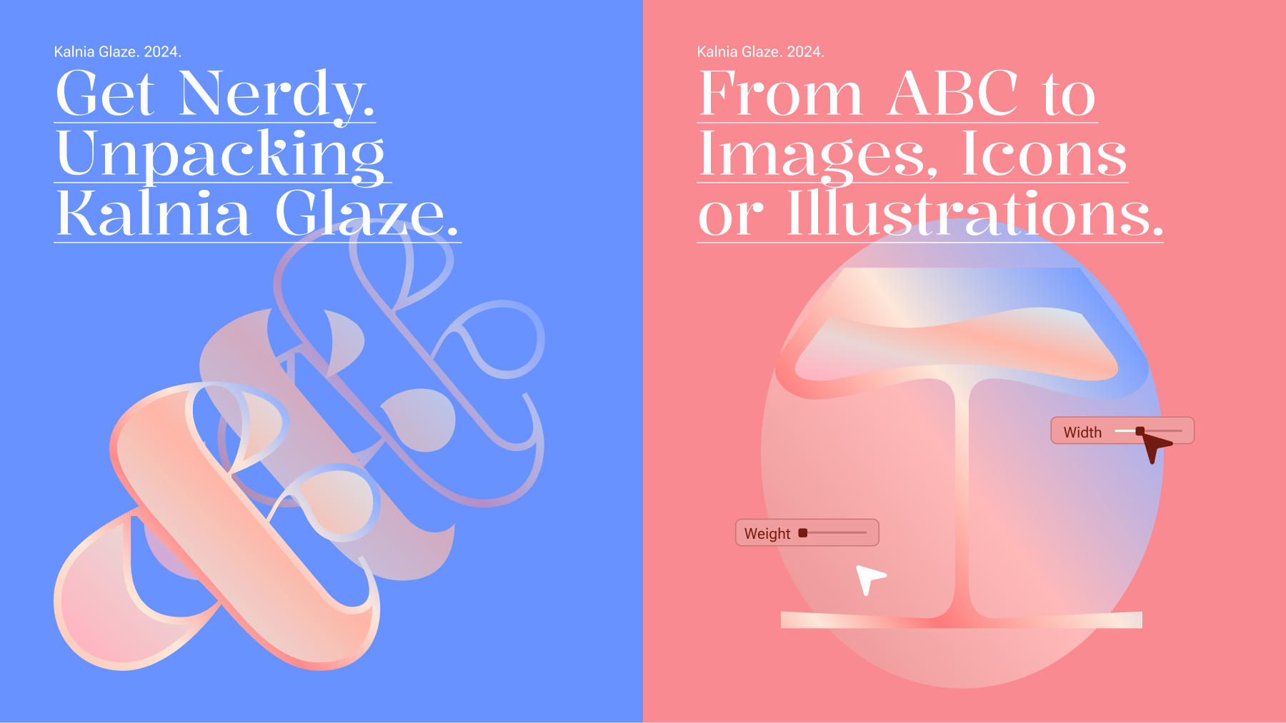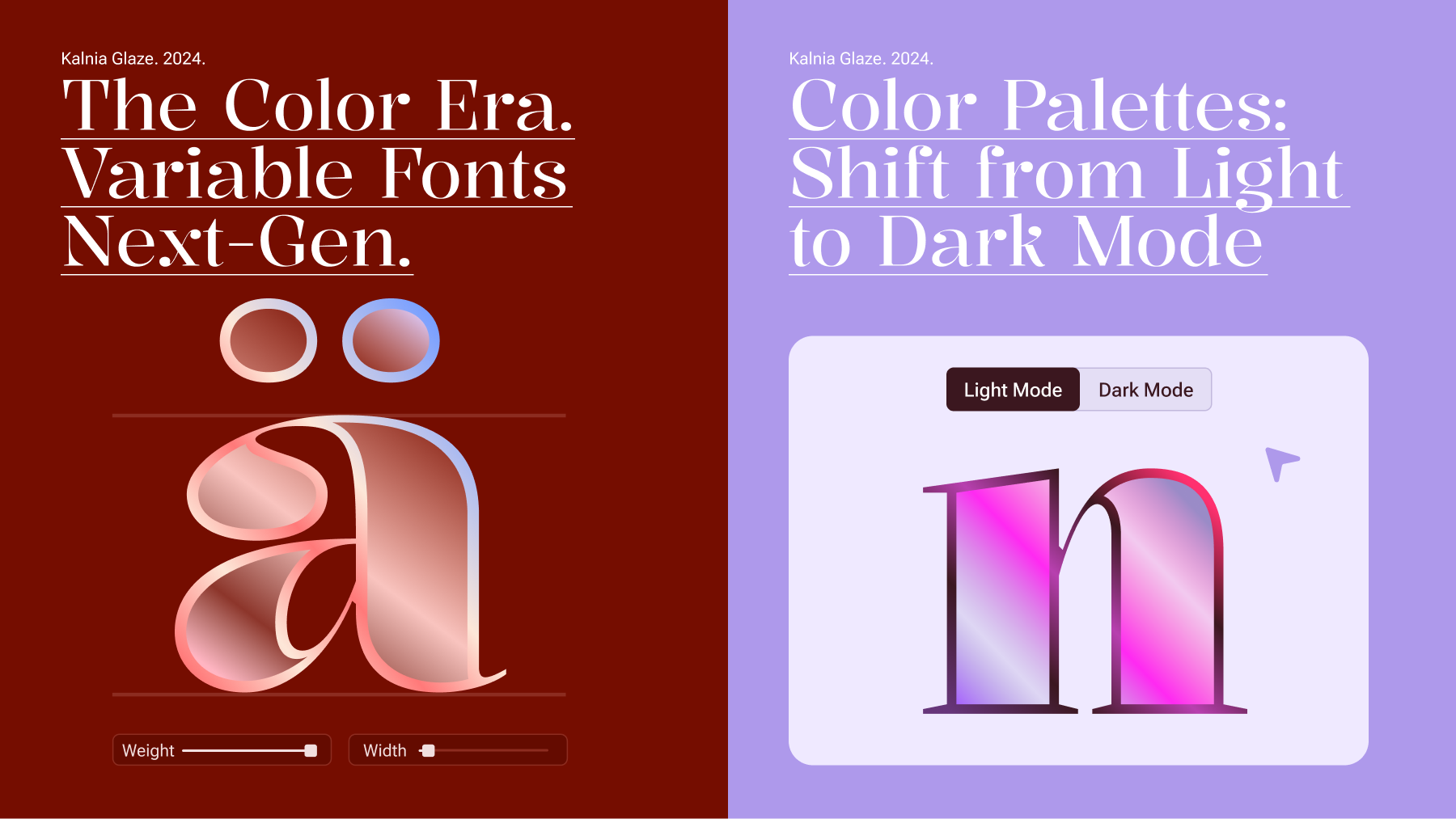 Kalnia Glaze is a new typeface commissioned by Google Fonts, that experiments with the new color font technology in variable fonts, inviting you to step into a world of color and add vibrancy and depth to your projects.